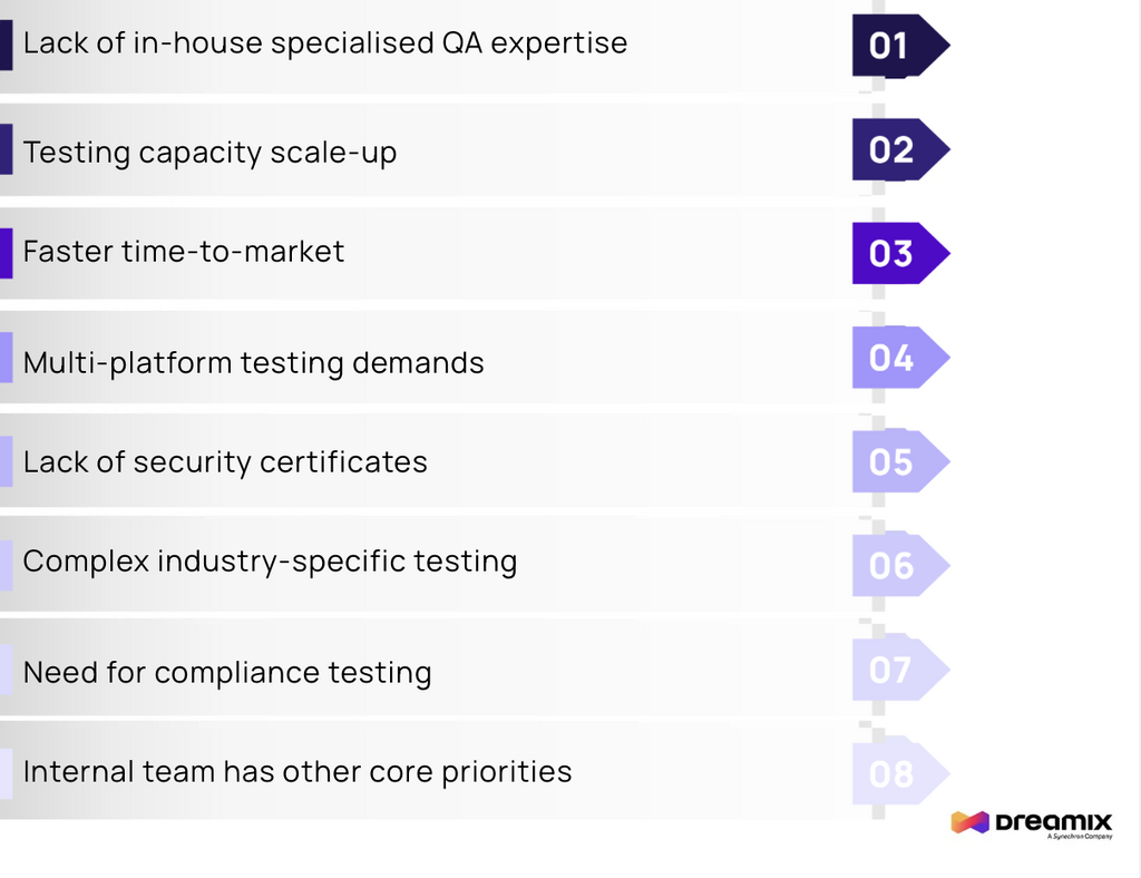 - Lack specialised QA expertise internally